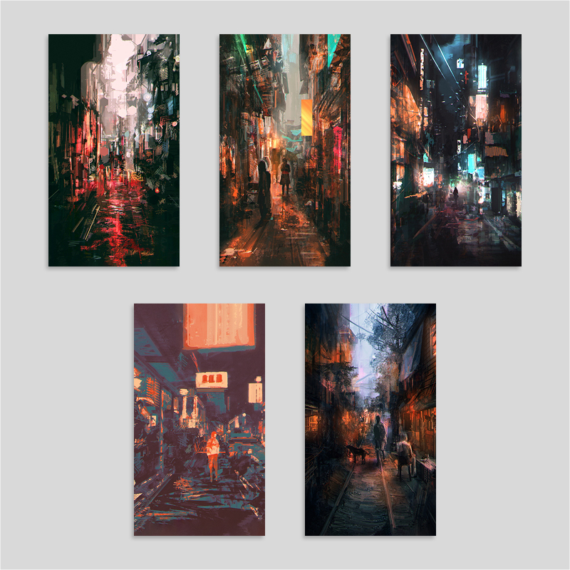 - About the art: This series of artworks are part of my cityscapes series (also known as "Walled Kingdom"). These five pieces, in particular, are some of my earliest works (2017-18) even before I established the art series officially. Thank you so much for the support.